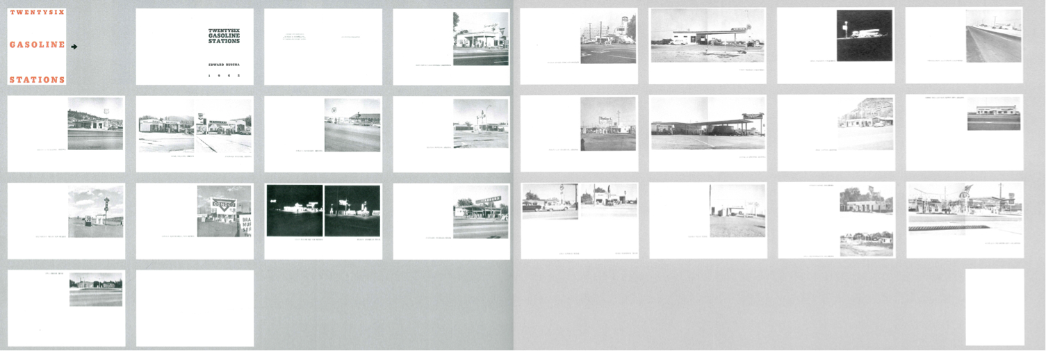 Im Jahr 1962 begann Ruscha mit dem Buch Twentysix Gasoline Stations, das er ein Jahr später im Eigenverlag publizierte. Ungewöhnlich ist, dass zuerst der Titel gefunden wurde und Ruscha erst danach begann, den „Stoff“ für sein Buch zu suchen und zusammenzustellen. Er betrachtete das Tankstellenprojekt als eine Art Reportage.