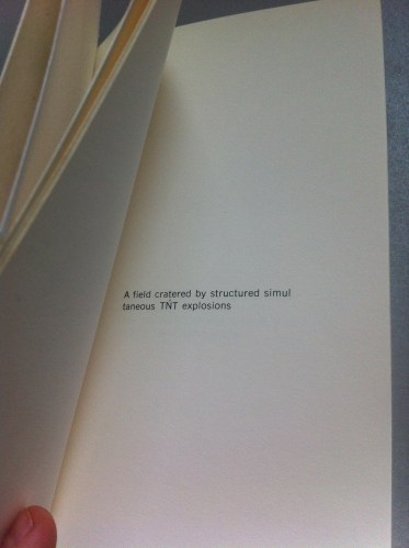 Der Preis des Buches von 1,95 Dollar, der kleingedruckt in der unteren rechten Ecke steht, war im Vergleich mit den heutigen Preisen einer Künstlerpublikation ausgesprochen günstig. Bücher stellen für Weiner einen alternativen Raum dar, eine Ausstellung, die überall gezeigt werden kann. Gleichermaßen ist es auch mit Statements, wobei die Beziehung in einer doppelten Wortbedeutung gesehen werden kann. Lawrence Weiner: „Das Buch ist die Ausführung und ist auch die Rechnung, es ist das, was du bekommst.“