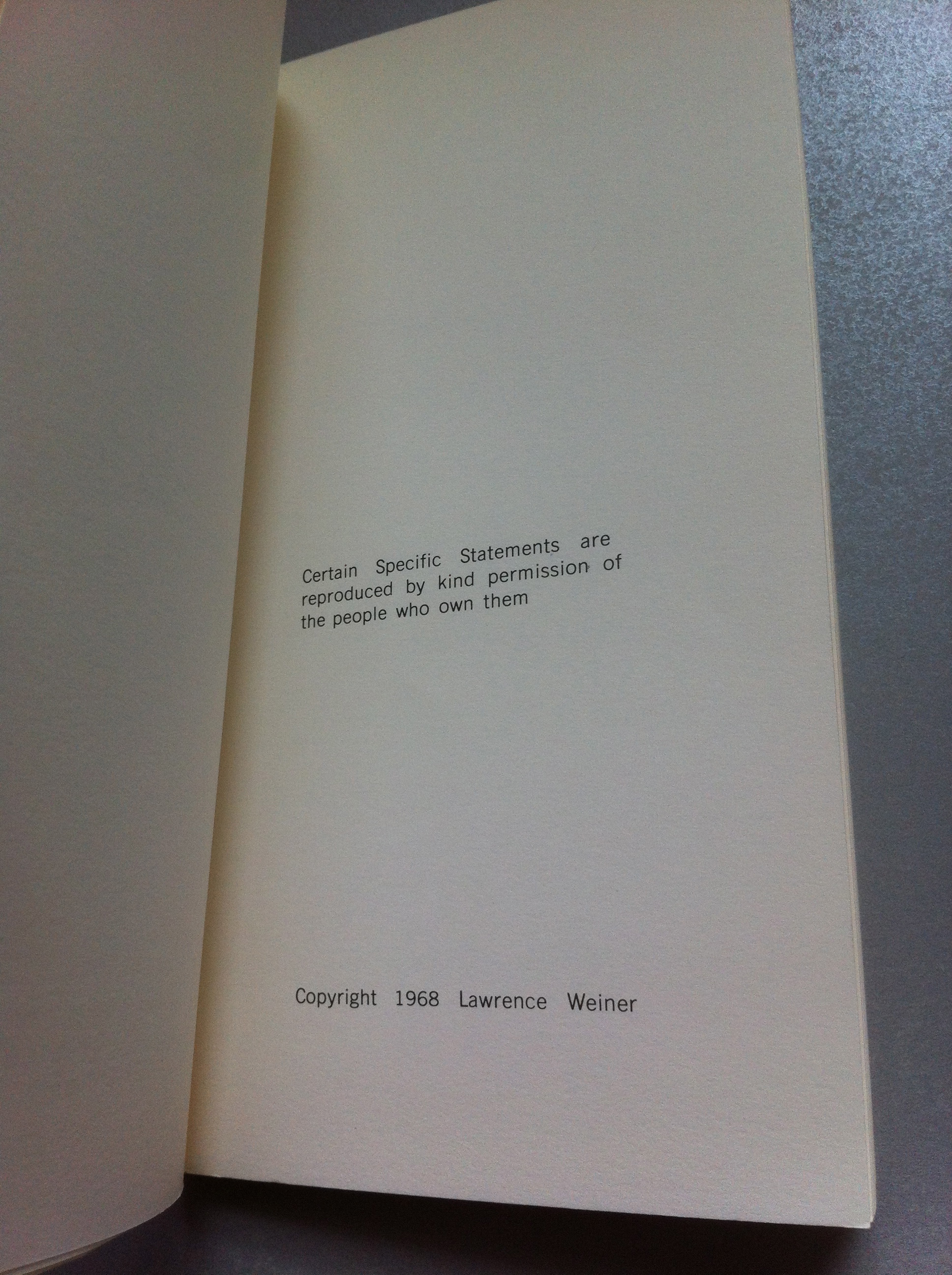 Vorwort 24. August 2012 Return to: Künstlerbuch | Artists‘ book: Lawrence Weiner. Statements, 1968Volle Auflösung (1936 × 2592) Image navigation Vorheriges Bild Nächstes Bild