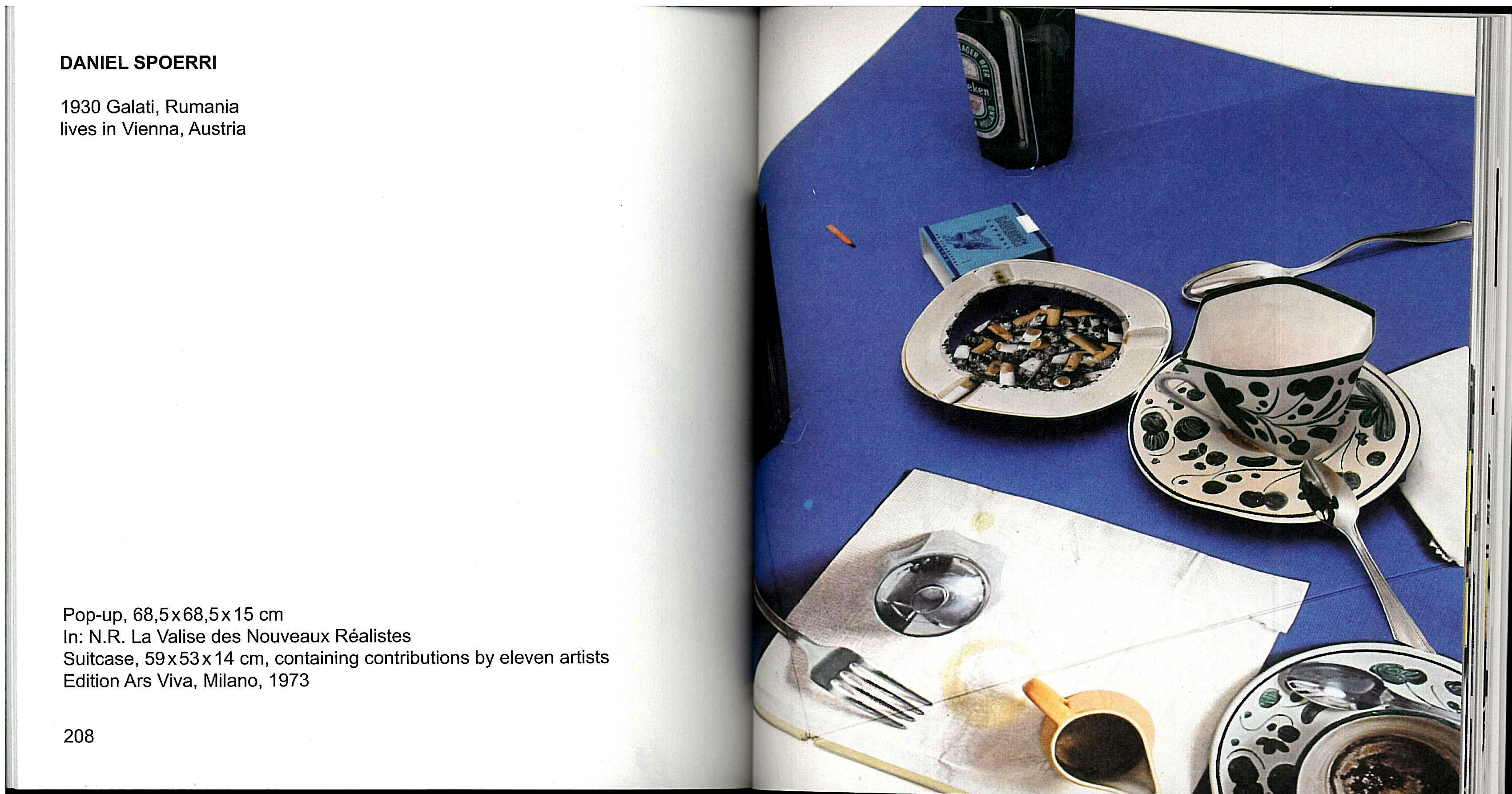 208 Spoerri 11. März 2013 Return to: Künstlerbücher | Ausstellungskatalog: From Page to Space. Published Paper Sculptures, 2011Volle Auflösung (3400 × 1786) Image navigation Vorheriges Bild Nächstes Bild