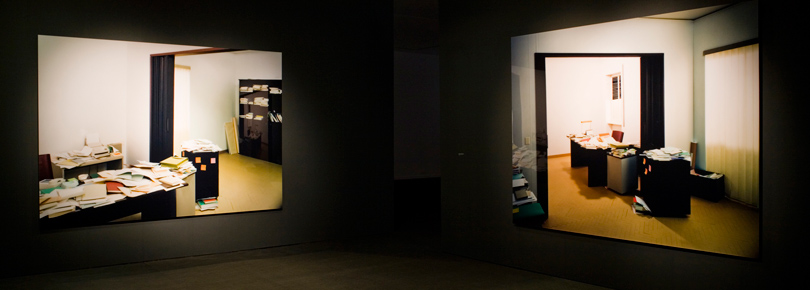 Ausstellungsansicht Madrid 1 1. April 2013 Return to: Kinematografische Effekte in der Werkserie Embassy von Thomas Demand | Teil IVolle Auflösung (810 × 290) Image navigation Vorheriges Bild Nächstes Bild Fundacion Telefonica Madrid, 2008 (von links nach rechts: Embassy VII, Embassy VI)