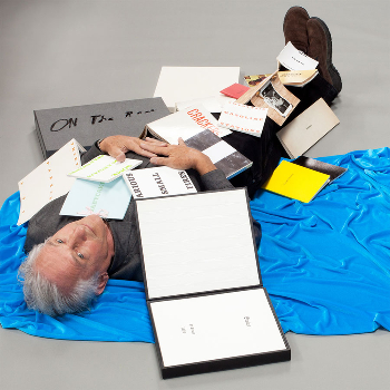 ED RUSCHA with His Books. Photo by Jerry McMillan. Courtesy Craig Krull Gallery © 2012