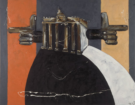 06-WB_1988_DerantifaschistischeSchutzwall_ar 18. Mai 2013 Return to: Ausstellung | Werner Büttner. Gemeine Wahrheiten im ZKM | Museum für Neue Kunst, Karlsruhe (06. April–22. September 2013)Volle Auflösung (462 × 358) Image navigation Vorheriges Bild Nächstes Bild Werner Büttner - Gemeine Wahrheiten gegen den guten Geschmack: "Der antifaschistische Schutzwall", 1988, Öl auf Leinwand, 190 x 240 cm, Sammlung Grässlin, St. Georgen. (© Werner Büttner/Foto: ONUK)