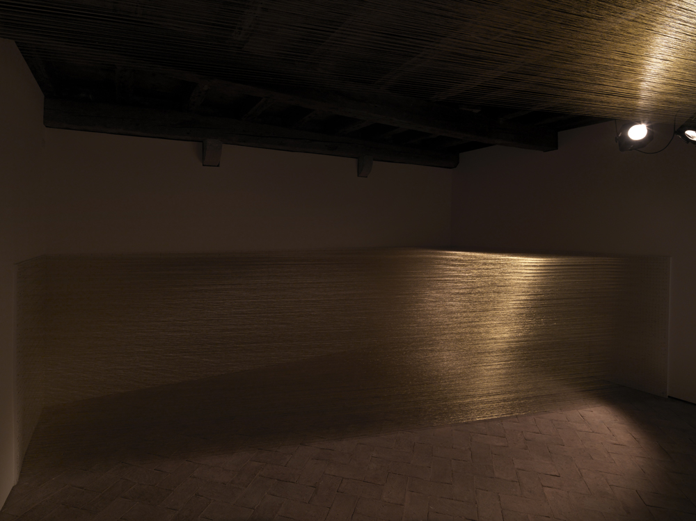 Irena Lagator_Further than Beyond, detail,, foto Dario Lasagni_low 28. Mai 2013 Return to: Irena Lagator Pejović – IMAGE THINK | Montenegro Pavilion at the 55th VENICE BIENNALE 2013Volle Auflösung (1000 × 749) Image navigation Vorheriges Bild Nächstes Bild Irena Lagator Pejović | Attraverso l’oltre / Further than Beyondfili dorati, faretti / golden strings, spotlights 2013280 x 500 x 520 cm