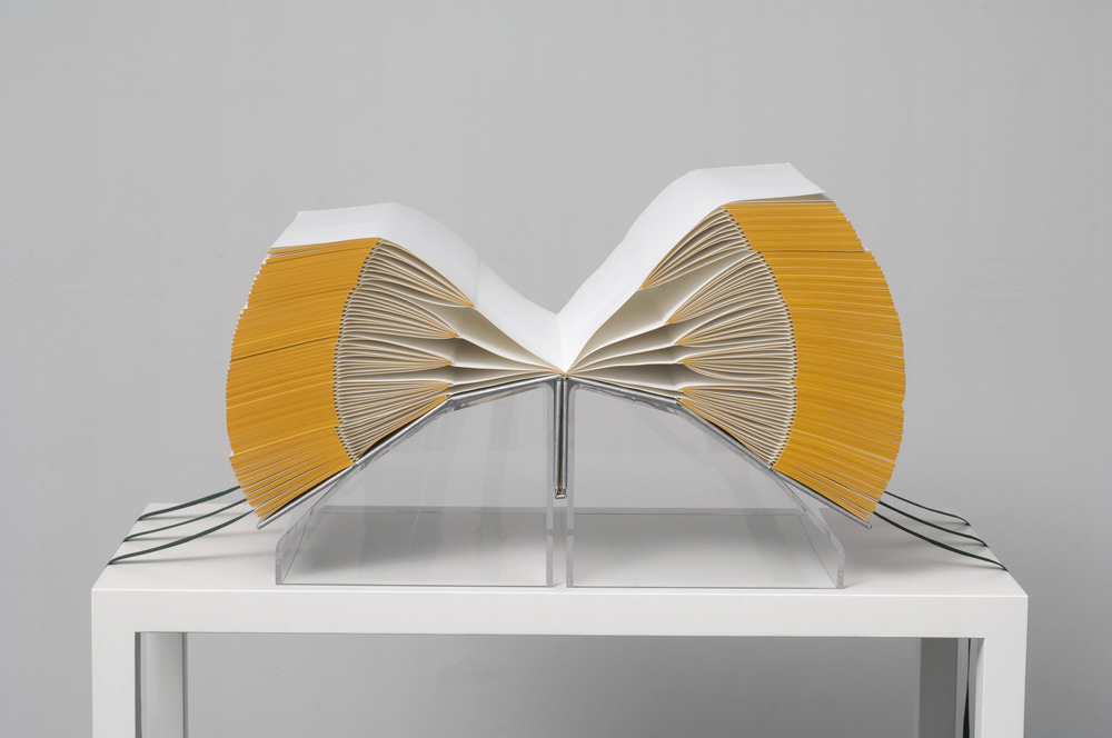 40.6 x 40.6 x 40.6 cm. Open Approx 16 x 23.25 x 11.75 inches 40.6 x 59.1 x 29.8 cm. Binding construction by Daniel Kelm.