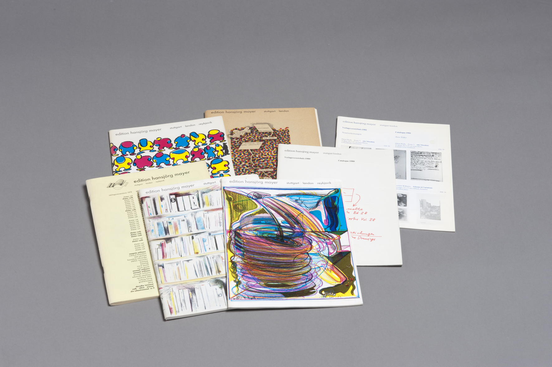 edition_hansjo_erg_mayer 24. August 2013 Return to: Ausstellungskatalog | Gut aufgelegt. Die Sammlung Heinz Beck, 2013 (Wilhelm-Hack-Museum, Ludwigshafen am Rhein)Volle Auflösung (1772 × 1179) Image navigation Vorheriges Bild Nächstes Bild Verlagsverzeichnisse der Edition Hansjörg Mayer, Stuttgart / London, 1970–1981 (Vorne links) Verlagsverzeichnis 1976, 1976 23 x 17 cm, Offsetdruck, 64 Seiten, Rücken- drahtheftung Auflage 1500 Ex. Umschlag: Richard Hamilton, vierfarbiger Offset- druck Sammlung Hansjörg Mayer, London (Vorne rechts) Verlagsverzeichnis 1974, 1974 23 x 17 cm, Offsetdruck, o. S., Rückendrahthef- tung 182/1000 Ex. Umschlag: Dieter Roth, Originalgrafik, num. u. sign. Sammlung Hansjörg Mayer, London