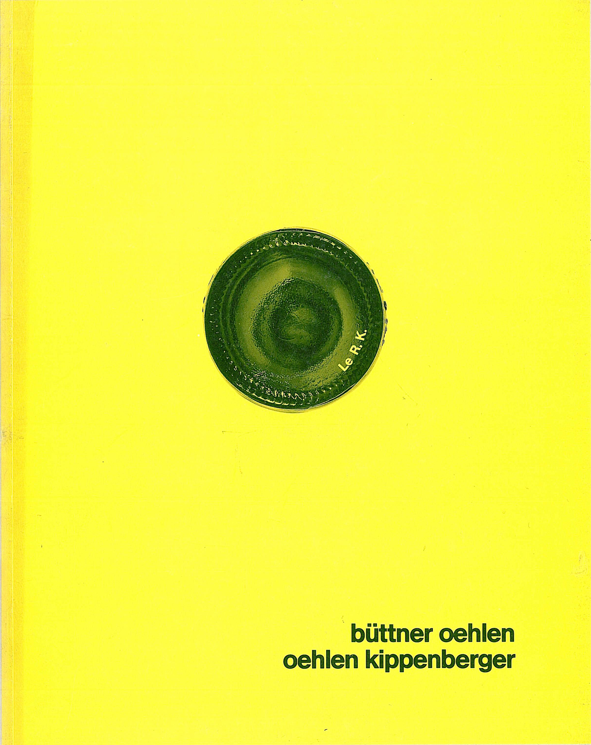 Passend zum Titel des gelben Ausstellungskatalogs Le radius kronenbourg ist auf dem Cover die 1:1 Untersicht einer Bierflasche der französischen Marke Kronenbourg abgebildet.