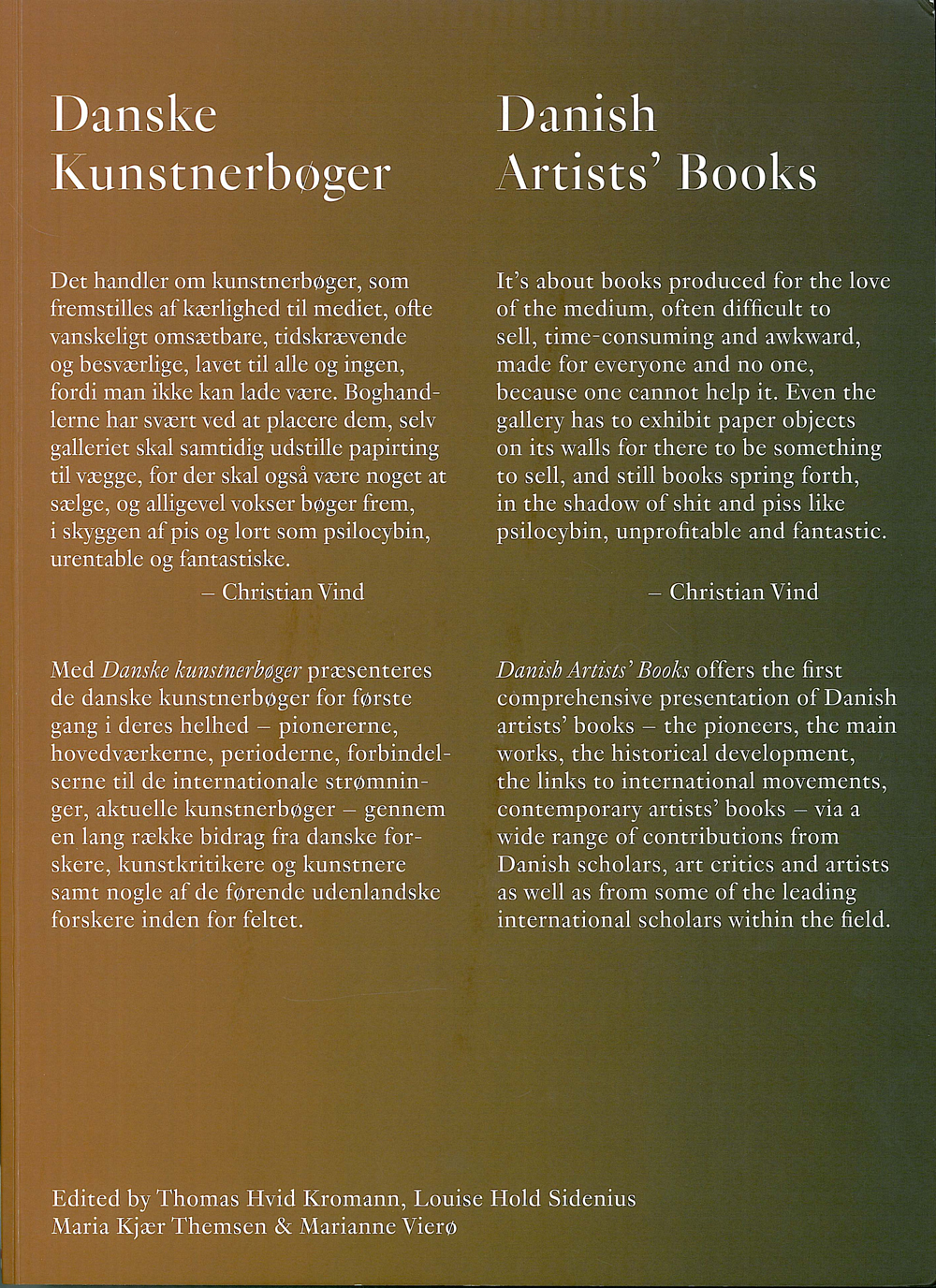 Mit über 200 Illustrationen präsentiert diese Publikation jene Künstler, die für die dänische Künstlerbuch-Tradition von ausschlaggebender Bedeutung waren: Asger Jorn, Albert Mertz, Per Kirkeby, Lene Adler Petersen, Jesper Fabricius, Christian Vind und Tal R.