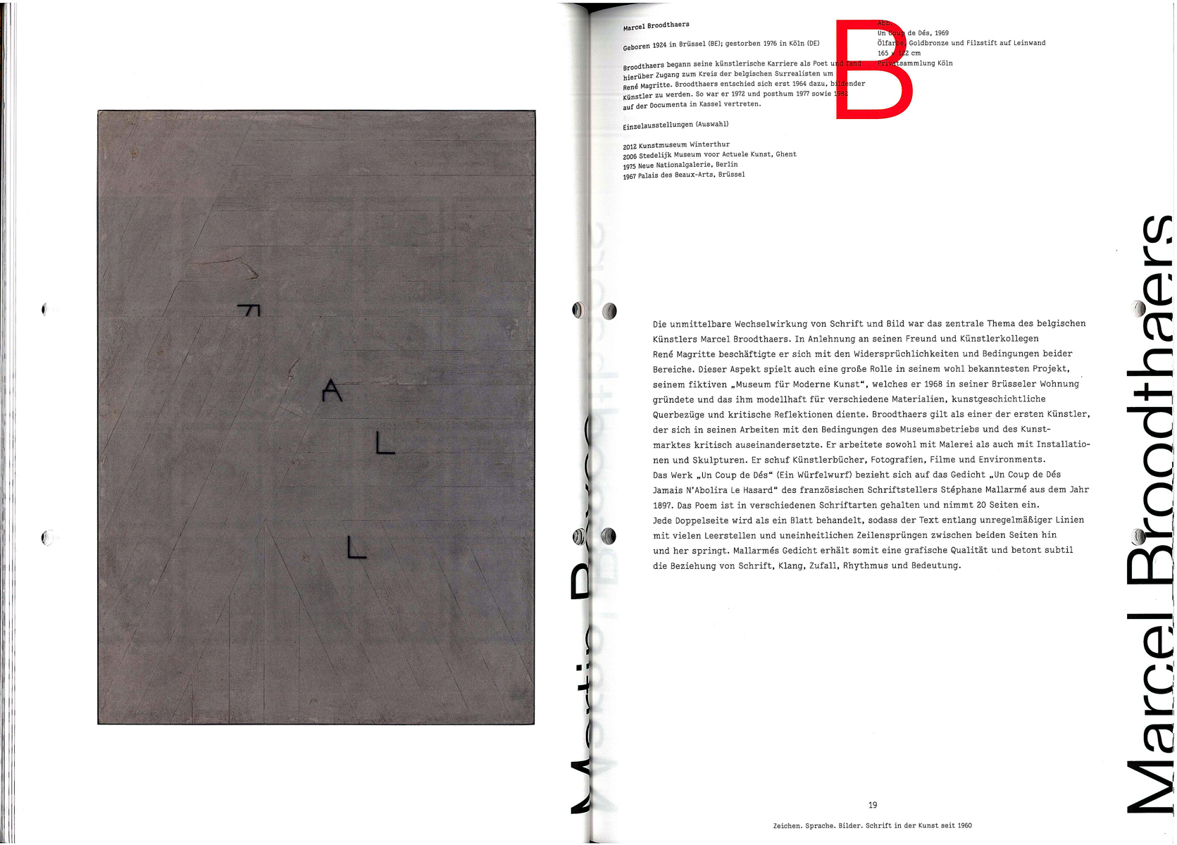 Zeichen Sprache Bilder_B 2. Mai 2014 Return to: Ausstellungskatalog | Zeichen. Sprache. Bilder. Schrift in der Kunst seit 1960 (Städtische Galerie Karlsruhe 2013/2014)Volle Auflösung (1671 × 1200) Image navigation Vorheriges Bild Ausstellungskatalog | Zeichen. Sprache. Bilder. Schrift in der Kunst seit 1960 (Städtische Galerie Karlsruhe 2013/2014)