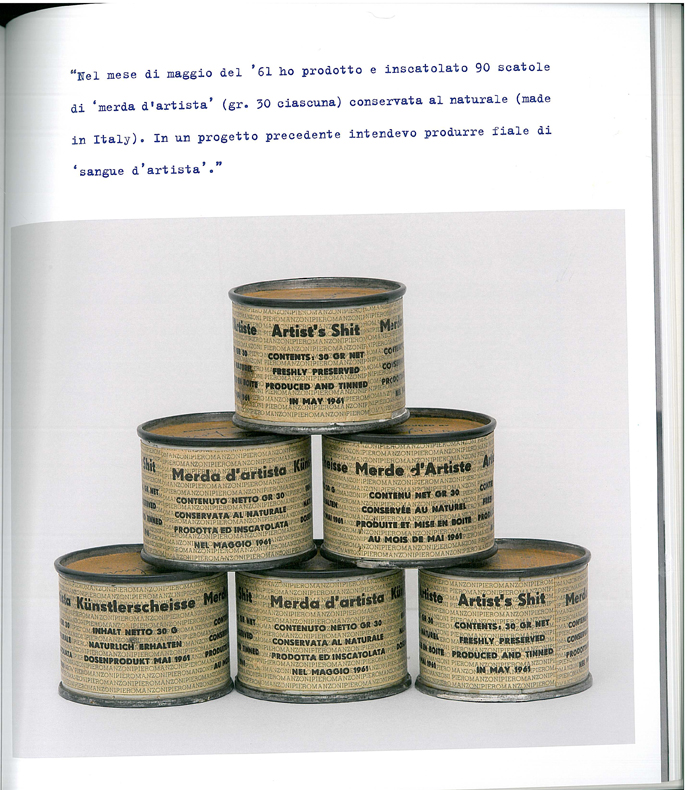 Piero Manzoni_2 27. Juni 2014 Return to: Ausstellungskatalog | Piero Manzoni. 1933-1963 (Palazzo Reale, Mailand)Volle Auflösung (687 × 790) Image navigation Vorheriges Bild Nächstes Bild Piero Manzoni, Scatolette di Merda d'artista nn. 20, 53, 68, 78, 80, Maggio 1961