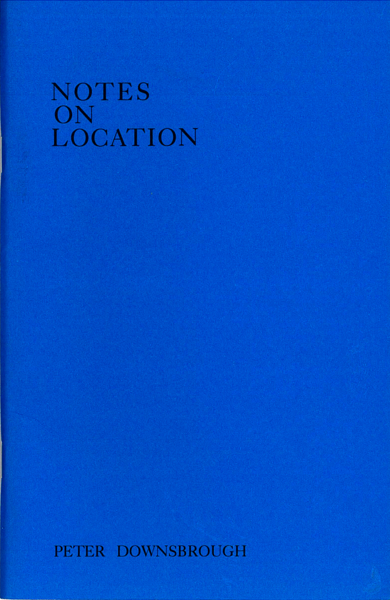 “In 1968-69, I was keeping some notes, on location. A year or so later, I was talking with Frederick Ted Castle and Leandro Katz, who were publishing under the name TVRT (The Vanishing Rotating Triangle). They wanted to see those notes and asked if they could publish them! I responded okay let’s. Hence Notes on Location followed shortly thereafter by Notes on Location II… There are more notes in the drawer.” (Peter Downsbrough, March 28, 2012)