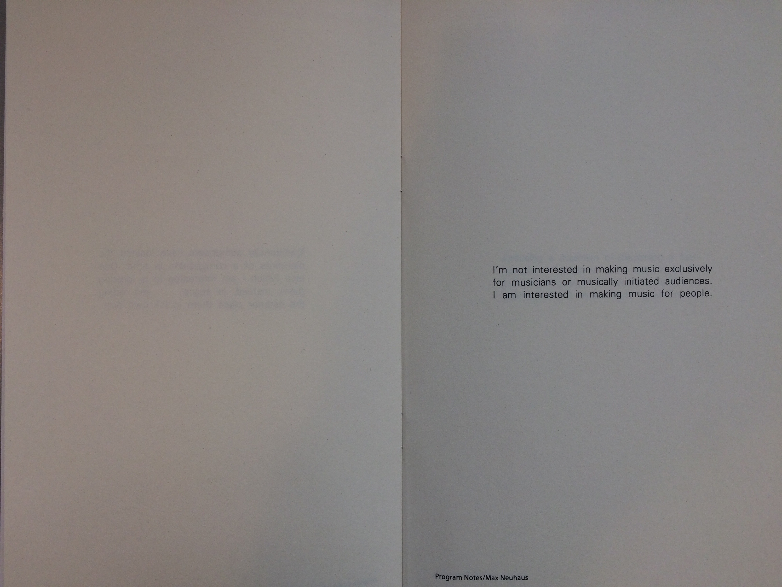 image2 26. September 2016 Return to: Künstlerbuch | Artists‘ book: Max Neuhaus. Program Notes (1974/2015 Primary Information, NYC)Volle Auflösung (3264 × 2448) Image navigation Vorheriges Bild