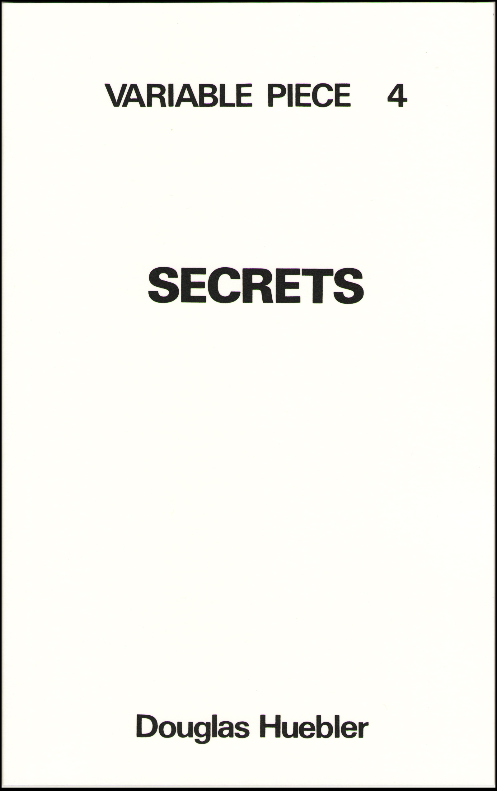 Variable Piece 4: Secrets is a facsimile edition of Douglas Huebler’s classic artist book, which was originally published by Printed Matter in 1978. Simple and salacious, the publication collects over 1,800 secrets written anonymously by visitors to the 1970 Software exhibition at the Jewish Museum. In doing so, the book provides a fleeting glimpse into the cultural, political, and social preoccupations of the era while showcasing Huebler’s open-ended and variable approach to art making—an approach that sought to undermine the dominance of object-oriented practices in favor of a text-driven conceptualism that relied on variables outside of the artist’s control. (source: Primary Information)