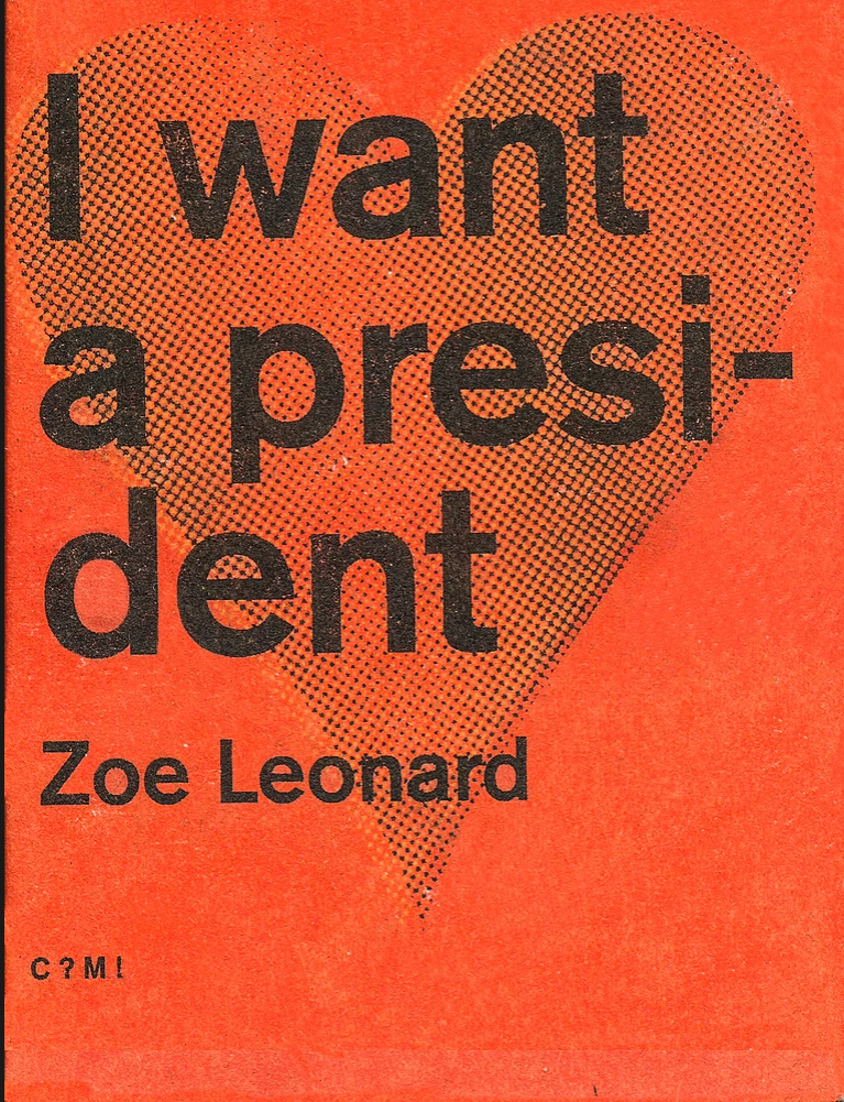 Written in the early 1990s, this poem-manifesto by Zoe Leonard was first published in 1992, following the announcement of the poet and activist Eileen Myles as a candidate to the presidency of the United States. Now available as pocket-book that can take anywhere.