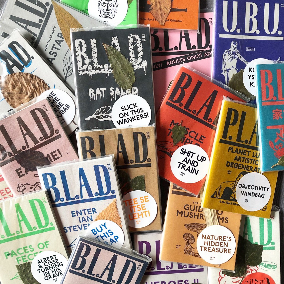 What is B.L.A.D.? Literally “blad” is the Norwegian word for “leaf”, and a “leaf” is a magazine, therefore B.L.A.D. must be a magazine, with a “blad” on the cover, a “blad” inside the packaging, and across its many internal “blads” there have been featured a wide range of illustrators and topics, and once even nothing at all.