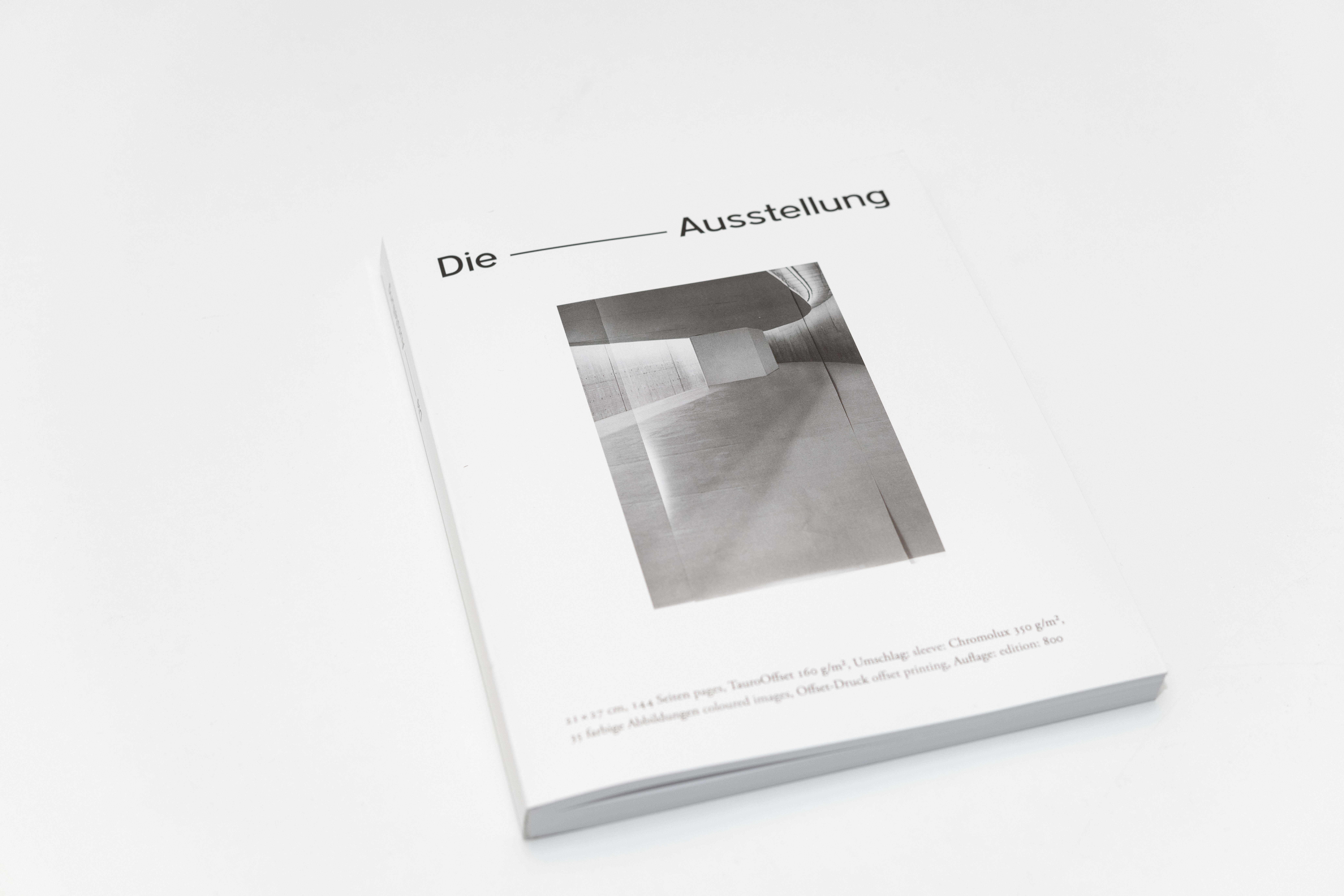Hinter dem Künstlerbuch „Die Ausstellung“ verbirgt sich ein konzeptuelles kuratorisches Projekt der beiden Kölner Künstler Alexander Basile und Alwin Lay.[1] Das Buch ist die „Dokumentation, Präsentation und Repräsentation einer Ausstellung“, die vom 23. August bis zum 20. September 2014 im Düsseldorfer Ausstellungsraum KIT – Kunst im Tunnel stattfand. 19 Künstler*innen wurden eingeladen, über einen Zeitraum von vier Wochen die Ausstellungsräume temporär zu nutzen: Ihre Arbeiten wurden nacheinander aufgebaut, ausgestellt und wieder abgebaut. Besucher*innen konnten die einzelnen Etappen beobachten, die Transformation der Ausstellung miterleben sowie am Ende auch dem ungewöhnlichen Abschluss des Projekts beiwohnen: Am letzten Tag wurde die Publikation fertig produziert und mit ihrer Präsentation im KIT zugleich die „Eröffnung“ einer vollständigen Variante der Ausstellung im Katalog zelebriert.