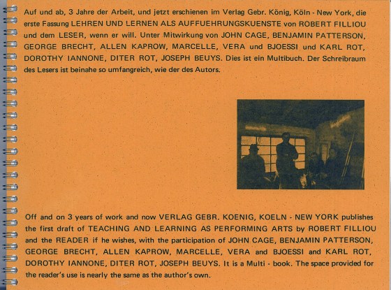 Künstlerbuch | Artists‘ book: Robert Filliou. Lehren und Lernen als Auffuehrungskuenste (1970 / Reprint 2014)